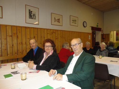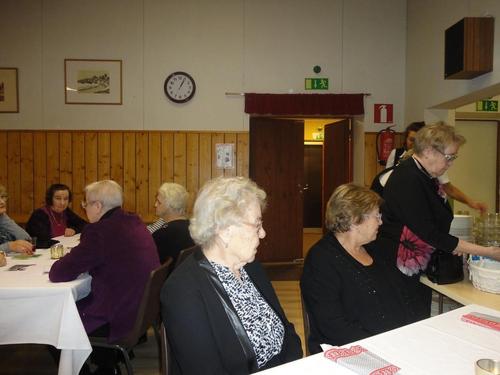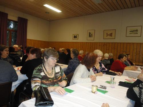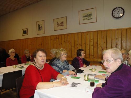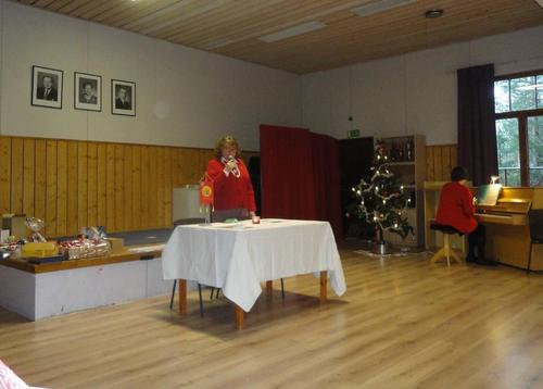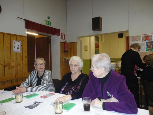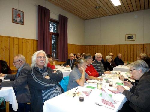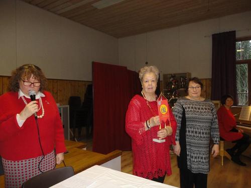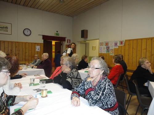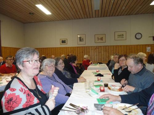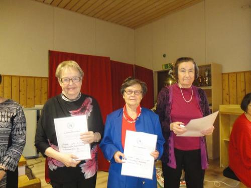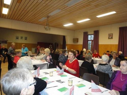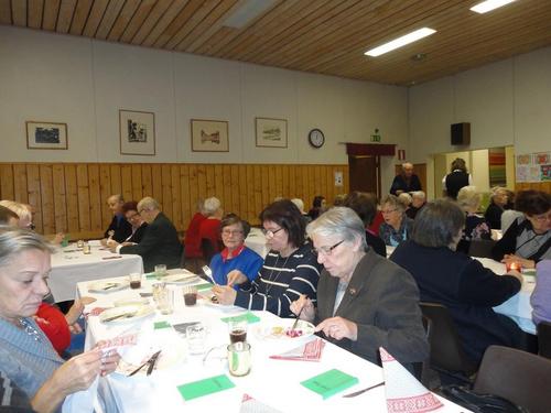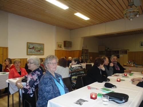 Perinteisen joulujuhlan viettoon oli saapunut taas suuri joukko jäseniämme. Puheenjohtaja Maire lausui tervetuliaissanat ja lauloimme paljon joululauluja jo tutun säestäjämme Pirjon tahdittamana. Neljä henkilöä palkittiin, yksi henkilö Yhdistysviirillä ja kolme hopeisella ansiomerkillä. Herkullinen, jouluinen ruokapöytä kaikkine tykötarpeineen oli tarjolla. Leikkimielistä ohjelmaa oli ruokailun välissä sekä yksinlaulua ja sketsejä. Iloiset ilmeet todistivat että kaikilla oli hauskaa.