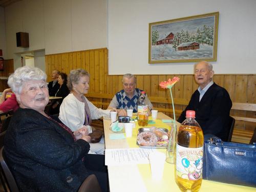 Ilmassa oli kesän tuntua, kun tänävuonna vietimme kerhon kevätjuhlaa. Aurinko paistoi täydeltä terältä. Aloitimme juhlan juomalla kahvia ja simaa munkkirinkilöiden kera. Lauloimme kevät lauluja ja ohjelmaa oli sopivasti ja se oli hauskaa. Kaikilla oli hymy herkässä ja mieli iloinen. Halukkaat vielä tulevat muutaman kerran kerhoon, mutta osa meistä jää jo kesätauolle.