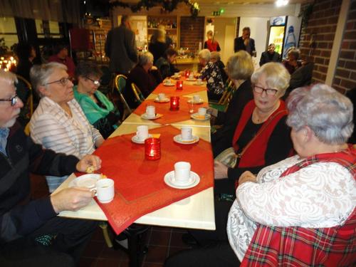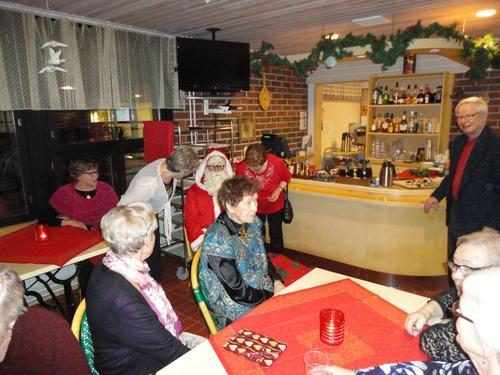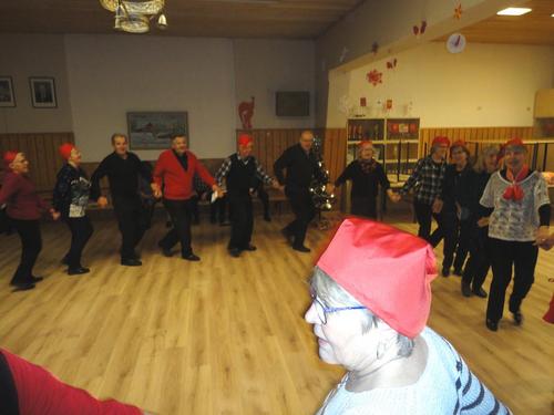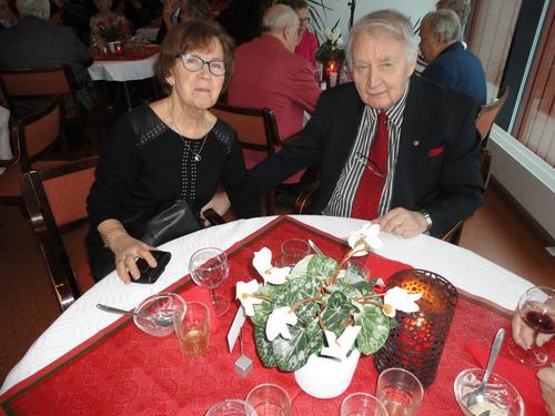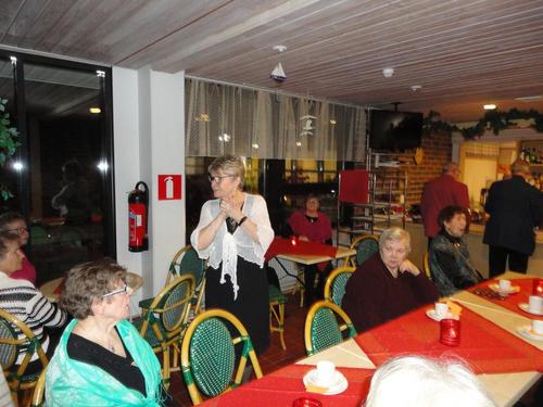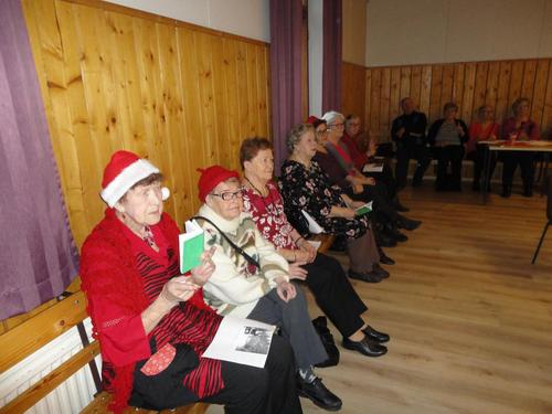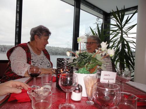 13.12. Olikin sitten se varsinainen pikkujoulujuhla. Lähdimme matkaan bussilla kohti Saloa päämääränä Lomakeskus Lehmiranta. Lehmirannassa nautimme hyvän ja runsaan jouluaterian. Aterian jälkeen ohjelmassa oli Eila Pienimäen tunnin mittainen Joulukonsertti ja hieman jaloiteltuamme nautimme takkahuoneessa kahvia ja joulutorttua. Tietenkin jouluun kuuluu Joulupukki ja niinhan se tuli tänne takkahuoneeseen, tuoden tullessaan lahjan useimmalle meistä. Kyllä se pukki ilon nostatti meissä, useimmat taisivat päästä ihan povelle istumaan. Eikä vieläkään lähdetty kotiin, vaan saimme tanssia Eila Pienimäen ja hänen säestäjiensa tahdissa. Tietenkin kuulimme sen Vanhan veräjän luona -kappaleenkin. Eila kertoi että tämä kappale kulkee aina hänen mukanaan.