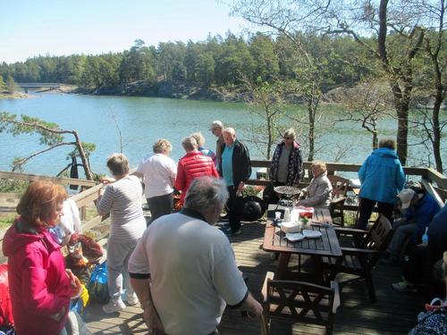 Toivotimme bussilla saapuvat, noin 30 kerholaista tervetulleiksi. Kahvit, letut ja makkarat maistuivat hyvin. Päivä oli lämmin ja kaunis. Oheiset kuvat kertoo lisää kesäpäivän vietosta kuntamme omistamalla upealla paikalla. Erikoismaininta rohkeille rouville uimasuorituksesta melko kylmässä merivedessä.
