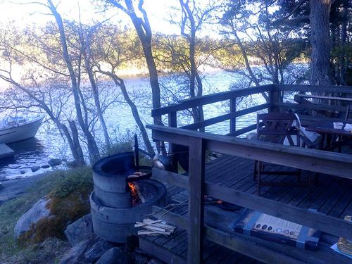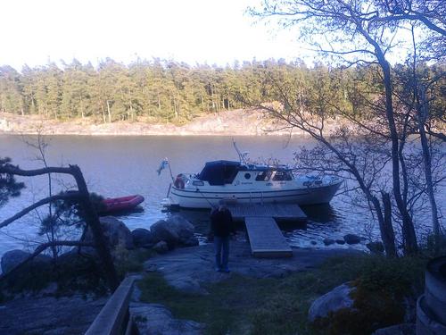 21.5. Kaupunginteatterin edestä käynnistettiin Paulan ja Ekin upea moottorivene, johon oli pakattu eväitä, lettupannut ym. tarpeellista. Eki lähti kipparoimaan venettä Helsingin, Espoon ja Kirkkonummen rantoja seuraillen kohti Porkkalanniemen kärkeä. Perille saavuimme noin kolme ja puolituntia kestäneen upean veneilyn jälkeen. Aloitimme järjestelyt nuotion sytyttämisellä ja hyvinhän se syttyi kapteenin tuomilla kuivilla puilla, jonka jälkeen paistoimme nuotiolla harjoitusmakkarat.