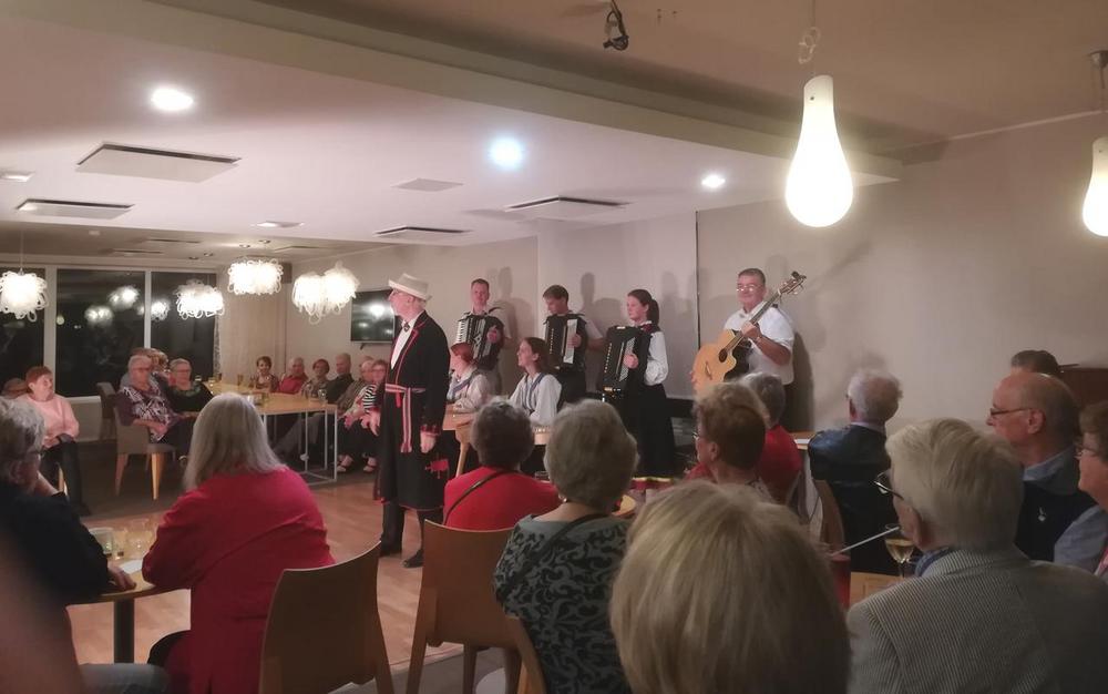 Oli syksyn kauneimpia ja luultavasti lämpimin viikko ja Pärnun puistot hehkuivat syysväreissä. Meitä lähtijöitä oli 16, mutta saimme muutaman henkilön mukaamme naapuri yhdistyksistä. Matka sujui mukavasti, kun oli oma bussi mukana koko ajan. Hoitoja sisältyi hintaan kolme päivässä ja aika moni taisi ottaa vielä lisääkin. Ruoka oli hyvää. Iltaisin oli ohjelmaa ja tanssia omassa hotellissa. Niinkuin kuvasta näkyy meidän Kalervo ja Reijo esiintyivät "Ajomies-orkesterissa". Tietenkin teimme ostosretken Latvian rajamyymälään. Kaikin puolin matka oli onnistunut ja mieltä piristävä. Kiitos matkavastaaville ja koko porukalle mukavasta seurasta !