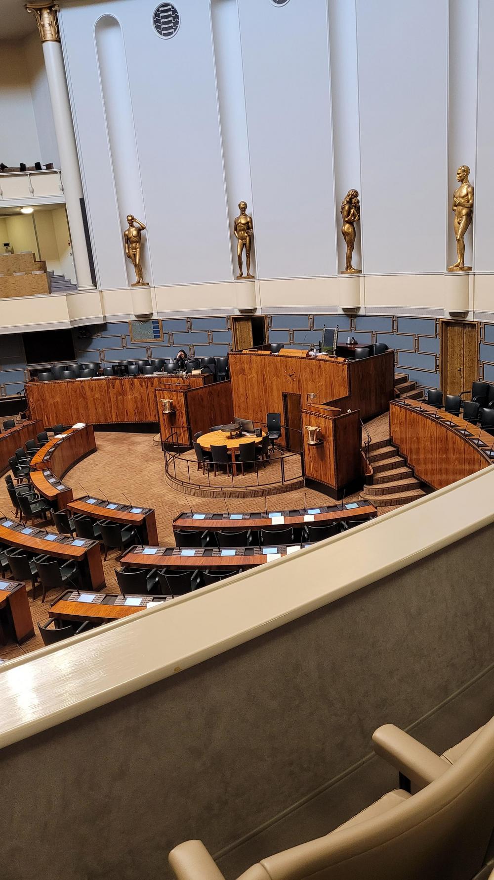27.3.2025 yhdistyksemme jäseniä tutustuivat Eduskuntataloon. Marmori kiilti yhdessä upeiden patsaiden kanssa. Harmi että sairastapauksien johdosta väkeä oli vähemmän.